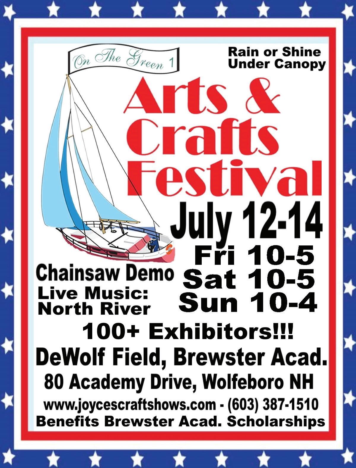 The “On The Green” Arts & Crafts Festival will be held again this year at Brewster Academy in Wolfeboro starting Friday, July 12 through Sunday, July 14. Hours are as follows: Friday and Saturday 10 a.m. to 5 p.m., and Sunday 10 a.m. to 4 p.m.
