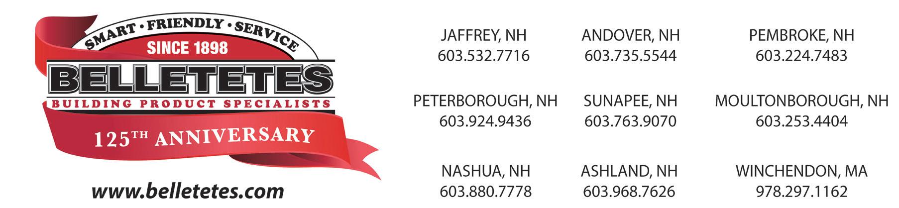 Are you looking for a reliable building material supplier in New Hampshire or Massachusetts? At Belletetes, we are a fully licensed and insured company with many years of success in our eld. We are committed to excellence in every aspect of our business practice. Over the years, we have found that stellar products and consistent customer service are what make the cornerstone of a successful business.