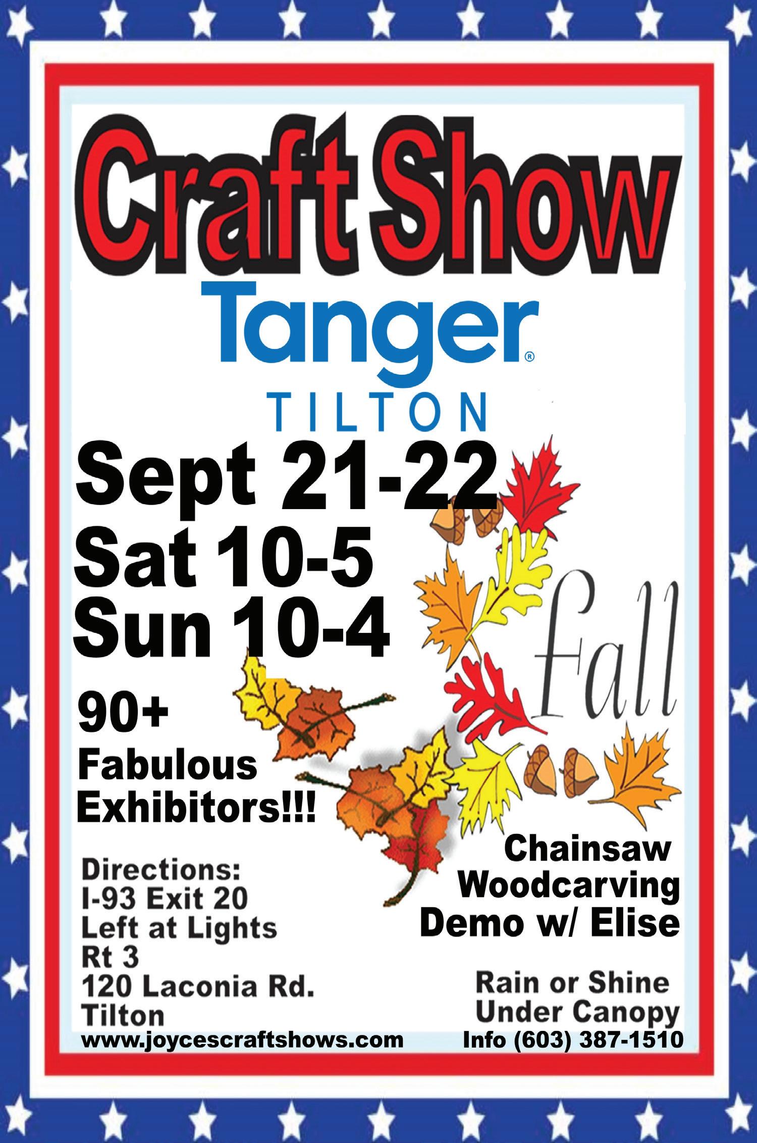Sept. 21 & 22, Falling Leaves Craft Fair, 9/21: 10 a.m. – 5 p.m.; 9/22: 20 a.m.4 p.m., Tanger Outlets, 120 Laconia Rd., Rt. 3, Tilton, Joyce’s Craft Fair, 603528-4014, www.joycescraftshows.com.