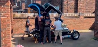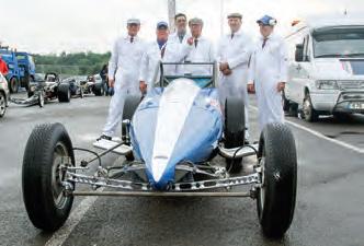 Probably the only slingshot with front brakes, the restored Allard dragster was originally used by Sydney Allard to promote the sport – before it even existed in the UK! Sadly, Stu Bradbury (centre) and restoration leader Brian Taylor (far right) are no longer with us