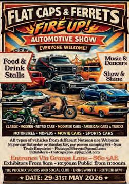 29-31 Flat Caps and Ferrets Fire Up Auto Show Phoenix Sports and Social Club, Brinsworth, Rotherham Exhibitors: flatcaps.yas.25@gmail.com Traders: flatcapsNferrets@gmail.com