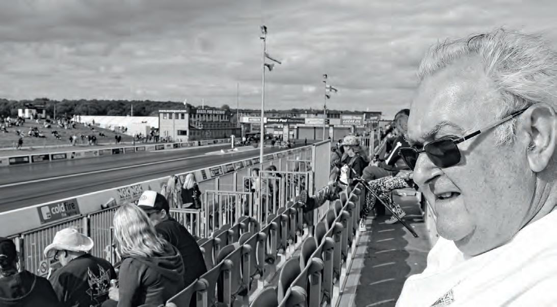 Dennis Priddle in the stands at Dragstalgia, maybe remembering some old battles on the quarter mile