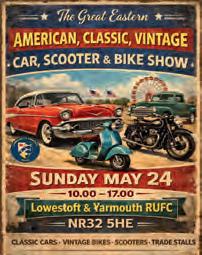 24 Great Eastern American, Classic, Vintage, Car, Scooter and Bike Show Lowestoft & Yarmouth RUFC. Paul: 07900 005871