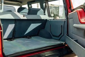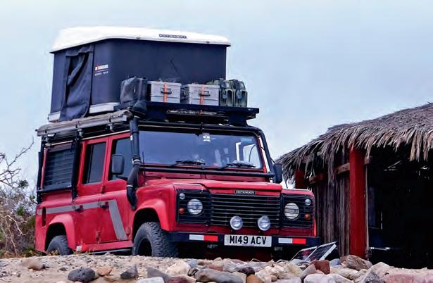 all-singing, all-dancing pull-out kitchens, fridge-freezers, shower units, fondue sets, you name it. And that’s all great, but it can blur the distinction between a camper and a mini-motorhome. Jen and Gav did carry a 52-litre National Luna fridge, but their main focus was on carrying stuff (securely, where necessary).