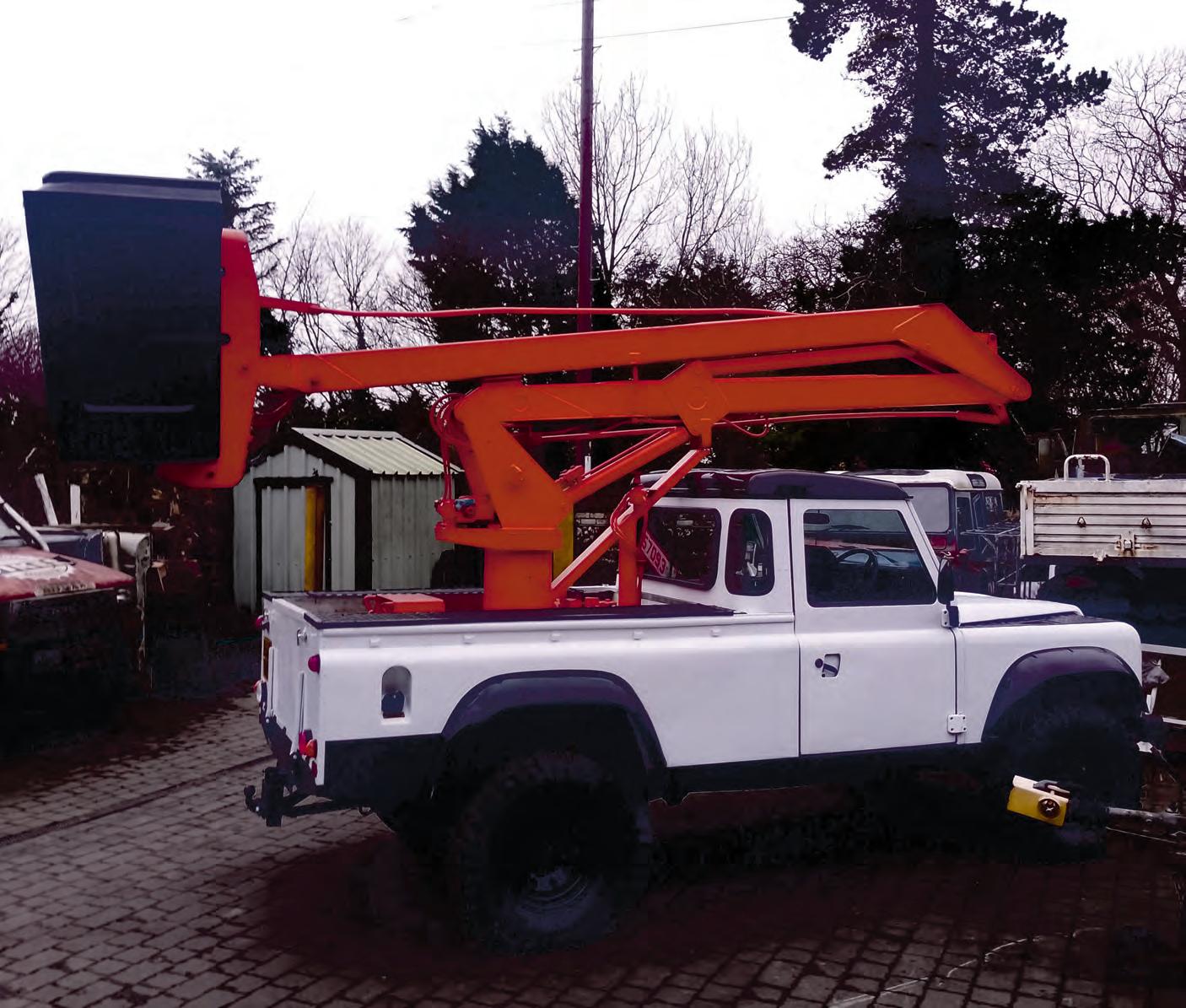 WE RECENTLY SHIPPED A 1985 LAND ROVER 110 PICK-UP WITH A CHERRY PICKER CONVERSION TO GALVESTON, TEXAS PICTURED BELOW THE LAND ROVER READY FOR ITS NEW LIFE