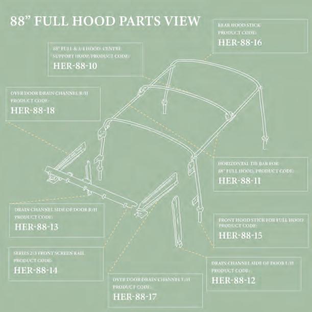 Heritage 1948 warns that with so many similar component parts, finding the correct hood sticks for your setup can be confusing. The company points you towards the exploded parts diagram pictured on this page, which contains individual product codes for