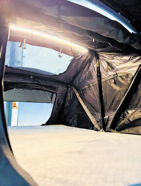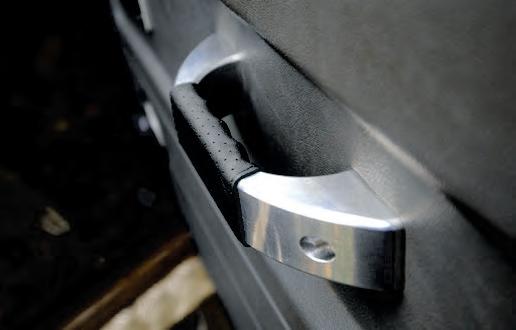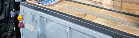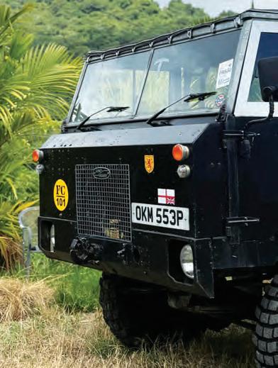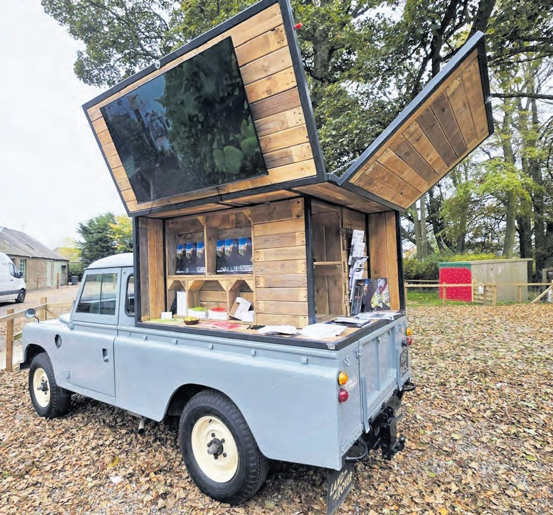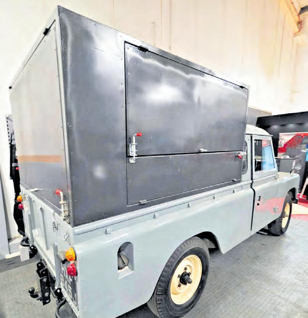 it ‘starts and runs perfectly every time and drives exceptionally well,’ and that it has always been stored inside. No small thing, that. But what make it stand out is defi‑ nitely what’s on the back. Flush‑fitted on the pick‑up bed is a multi‑purpose box that opens up no end of pos‑ sibilities for what you could do with the vehicle. Ben suggests catering, exhibitions and weddings as three potential purposes that come to mind – it’s served for the latter of the trio in its time, albeit without the box (plenty of bunting though) and as you can see in the pictures, it’s currently set up to work as a display unit with shelves and racking for Kirkland’s brochures and so on as well as a screen for video presentations and a couple of drinks dispensers on the opposite side to take care of clients’ hospitality needs.