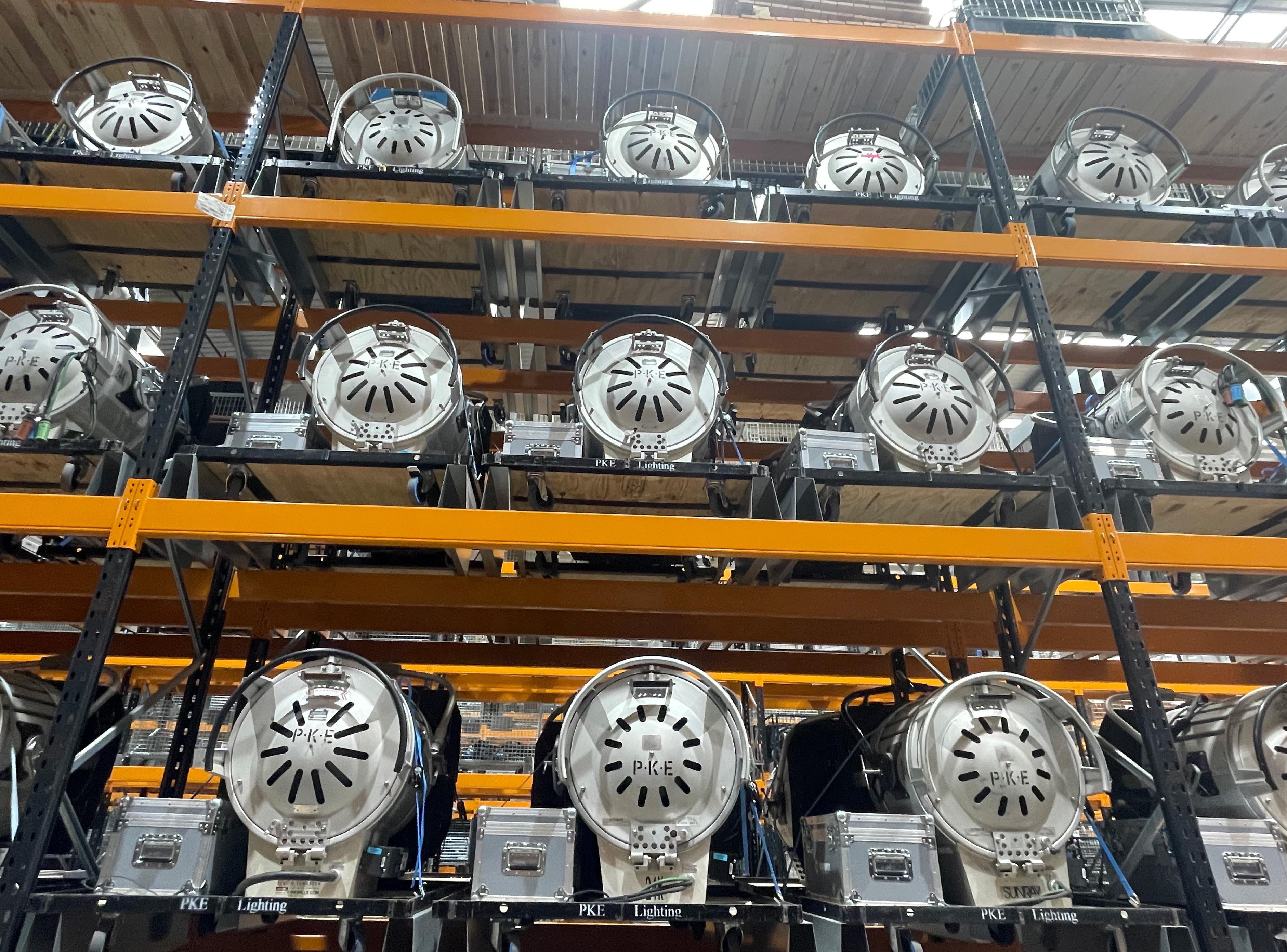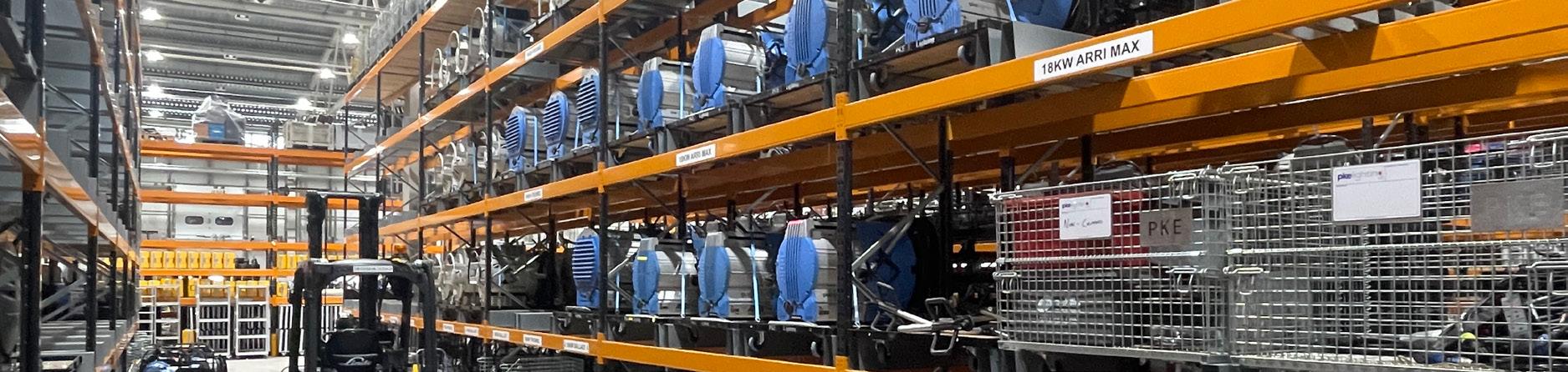 The warehouse is an impressively cavernous space, with parallel aisles of heavy-duty decking sixtiers high, stacked with all manner of the very latest LEDs from manufacturers such as Creamsource, ARRI, Kinoflo and Astera, along with more traditional HMIs, Tungsten and fluorescents, Powergem ballasts, plus lots of cables and stands.