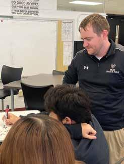 Beyond the classroom, Walterbach serves as a mentor teacher, assistant football and track coach, and head boys basketball coach. He has guided many young people through their academic journeys, including numerous first-generation college students.