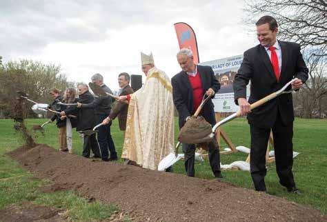 Students, faculty and community members were on hand on the morning of March 25 for the groundbreaking of what will be the Our Lady of Lourdes grotto.