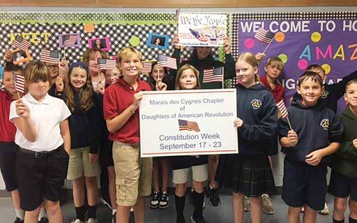 Constitution Week was established on Aug. 2, 1956, to encourage the study of the Constitution in communities and schools. A poster, handouts of flags and a pocket Constitution will be given to the students along with discussions with the students on the Bill of Rights.