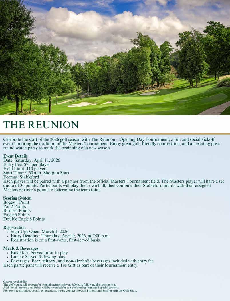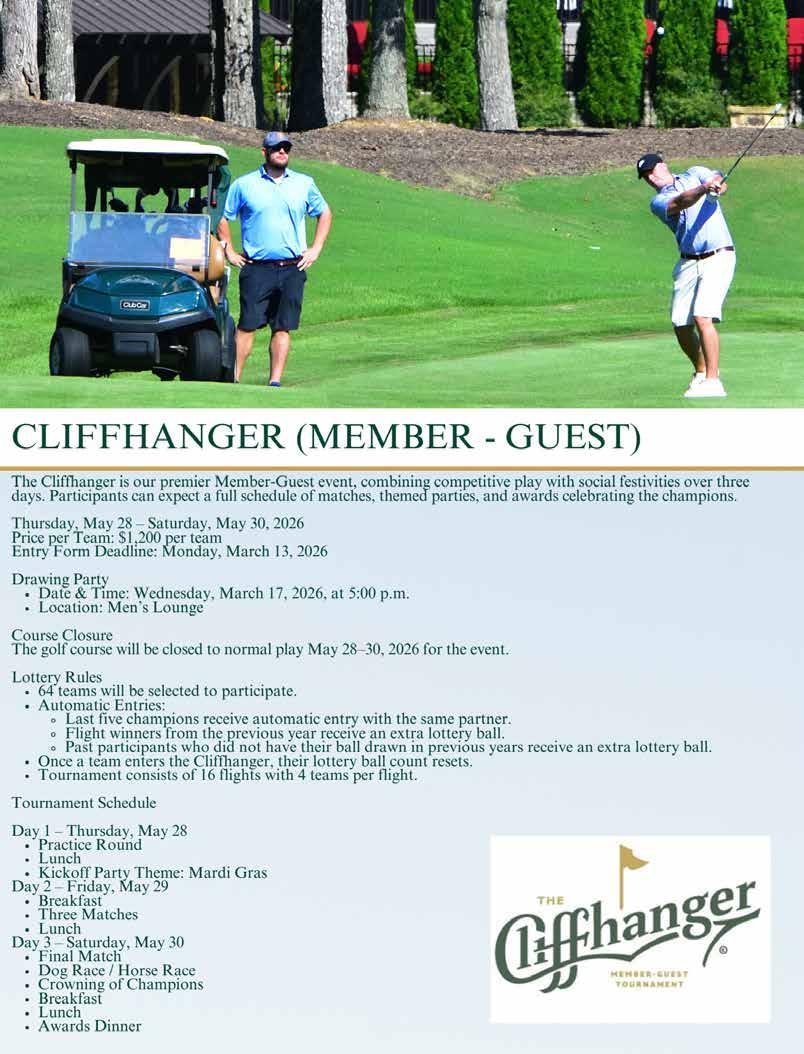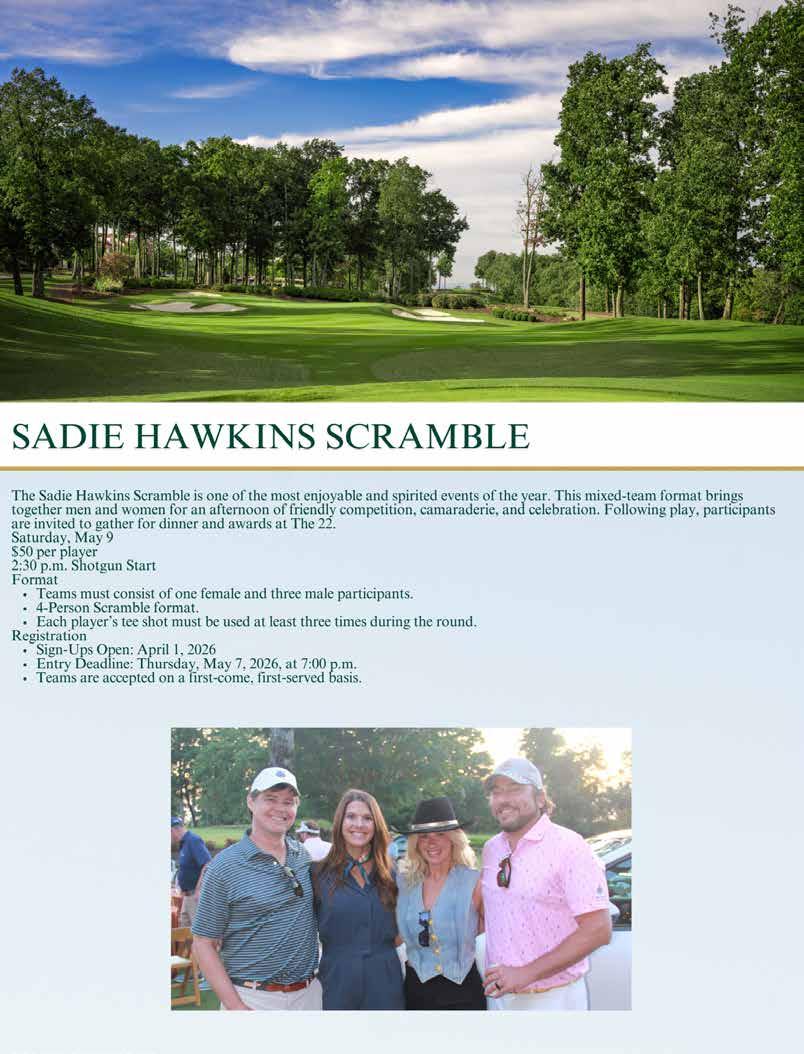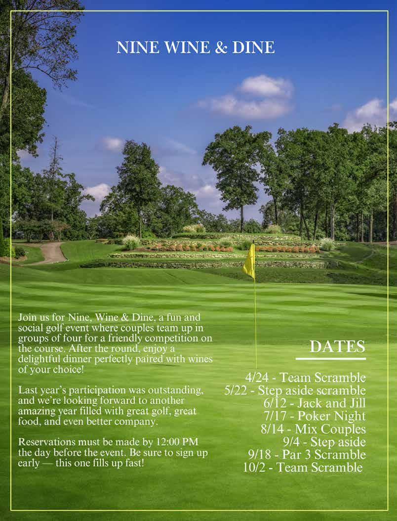 h o p e y o u w i l l t a k e a d v a n t a g e o f o u r o f f e r i n g s . F r o m G o l f e v e n t s a n d P r o g r a m s , W i n e
