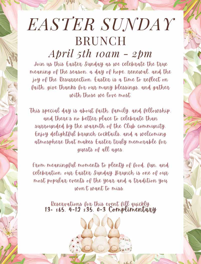 April 5, 10 AM - 2 PM Easter Sunday Brunch