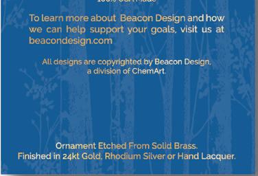 Founded in 1976 by a U.S. Veteran, Beacon Design® is proud to be the leading ornament manufacturer in America. Renowned for producing ornaments of the finest etched detail and quality craftsmanship, Beacon Design continues to innovate and inspire through timeless design and dedication to excellence.