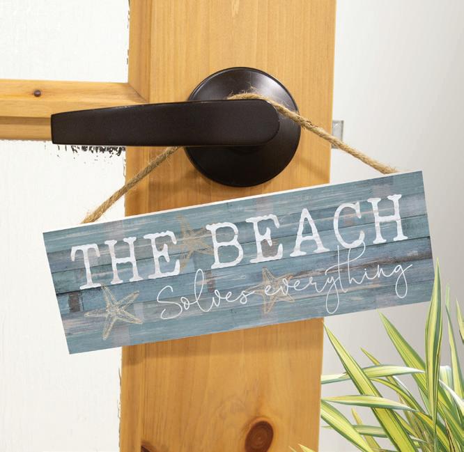 These handcrafted signs pair wood slats with jute string. Pieces feature sentiments of encouragement and inspiration and are combined with coastal-themed artwork and decorative accents. Hang signs from a wall, coat hook, or drawer knob.