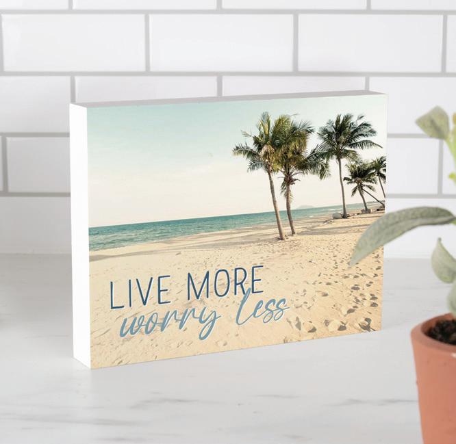 Artwork is applied to primed, textured linen giving the look and feel of hand painting. Subject matter primarily consists of landscapes, still lifes, and animals. Beach-inspired sentiments are overlaid the art, adding depth and meaning. While each piece makes a statement all its own, these prints also make great additions to a gallery wall.