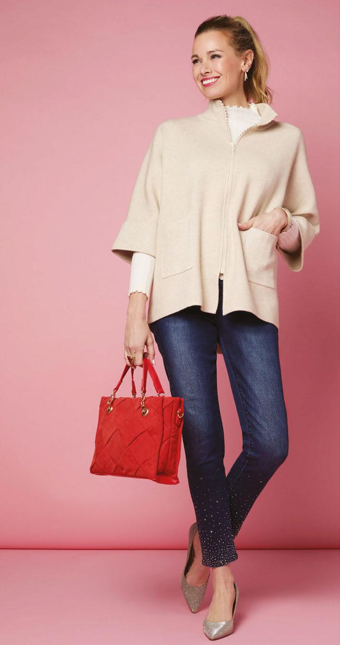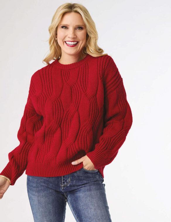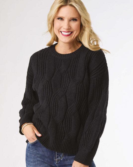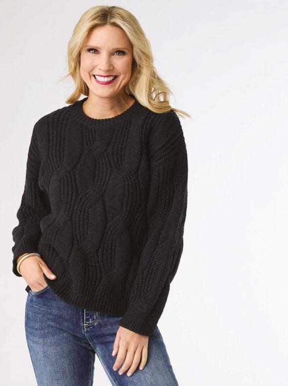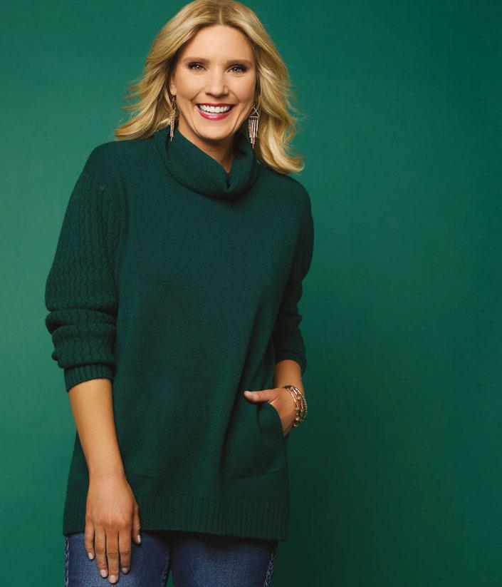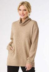 HEAVENLY-LUXE COWL NECK CABLE SWEATER WITH POCKETS Viscose, Polyester and Nylon $34.95/PC • XXL $37.95/PC • Min.