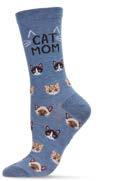 Beagle Crew MF7-918 Colors: Black, Legion Blue, Crockery Fancy Dog Crew MF7-904 Colors: Asphalt, Legion Blue, Crockery Pooch Crew MF7-906 Color: Asphalt Professor Dogs Bamboo Crew MCV04095 Colors: Black, Fuchsia Studious Dogs Bamboo Crew MCV04094 Colors: Black, Legion Blue Studious Cats Bamboo Crew MCV04093 Colors: Black, Fuchsia Multi Cat Crew MCV05610 Colors: Black, Crockery, Silver Filigree Cats & Friend Crew MCV05370 Color: Black Cup o’ Cats Bamboo Crew MCV06481 Colors: Pink, Denim Heather MOQ: 6/Color Size: 9-11 Fiber Content: 75% Rayon from Bamboo, 23% Polyester, 2% Spandex ANIMAL LOVERS: CATS Kitty Love Crew MWN00142 Color: Medium Gray Heather Love Cats Crew MWN00143 Colors: Medium Gray Heather, White Cat Mom Bamboo Crew MCV07390 Colors: Medium Gray Heather, Denim Heather 17