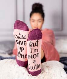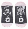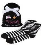 100 MEMOI You are Purrfect Cozy Sock & Gift Bag Set MGV05557 Colors: Ivory It’s A Boy Cozy Sock & Gift Bag Set MGV05854 Colors: Ivory It’s A Girl Cozy Sock & Gift Bag Set MGV05855 Colors: Ivory Tearrific Teacher Cozy Sock & Gift Bag Set MGV05550 Colors: Black Congratulations Cozy Sock & Gift Bag Set MGV05856 Colors: Ivory & GIFT BAG SET Nurses Call The Shots Cozy Sock & Gift Bag Set MGV05549 Colors: Black I Woof You Cozy Sock & Gift Bag Set MGV05551 Colors: Gray Best Mom Cozy Sock & Gift Bag Set MGV05556 Colors: Pink MOQ: 3/Color/Size Size: One Size Fiber Content: 100% Polyester NON-SKID Cozy Socks