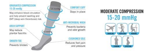 107 MOQ: 3/Color/Size Size: 9-11, 10-13 Fiber Content: 50% Merino Wool, 20% Spandex, 15% Acrylic, 15% Polyester ACTIVE WOOL COMPRESSION SOCKS Solid Merino Wool Cushion Sole Compression Knee Sock WFC1520-1600 Color: Black, Medium Gray Heather, Blue Denim MOQ: 3/Color/Size Size: 9-11 Fiber Content: 70% Nylon, 27% Cotton, 3% Spandex PERFORMANCE NO SHOW COMPRESSION SOCKS Essential Performance Compression No Show UVY07269 Color: Gray, Mauve, White MOQ: 3/Color/Size Size: 9-11 Fiber Content: 59% Nylon, 34% Cotton, 7% Spandex PERFORMANCE LOW CUT COMPRESSION SOCKS Metallic Stripe Performance Compression Low Cut ULY07270 Color: Black, Peach, White