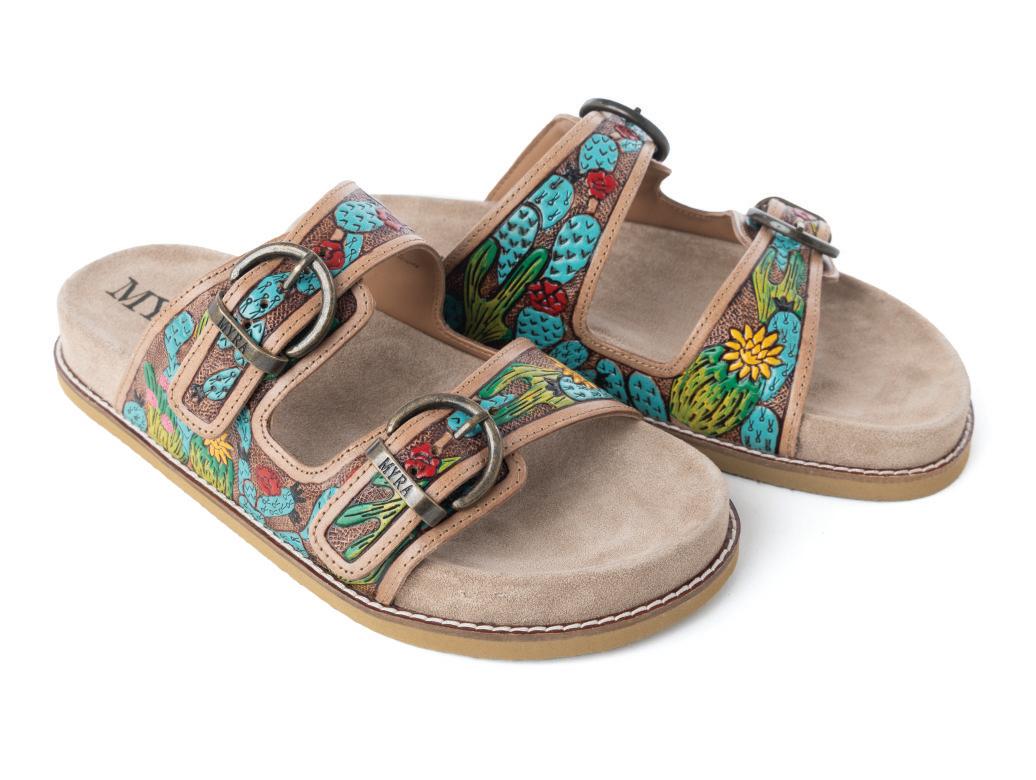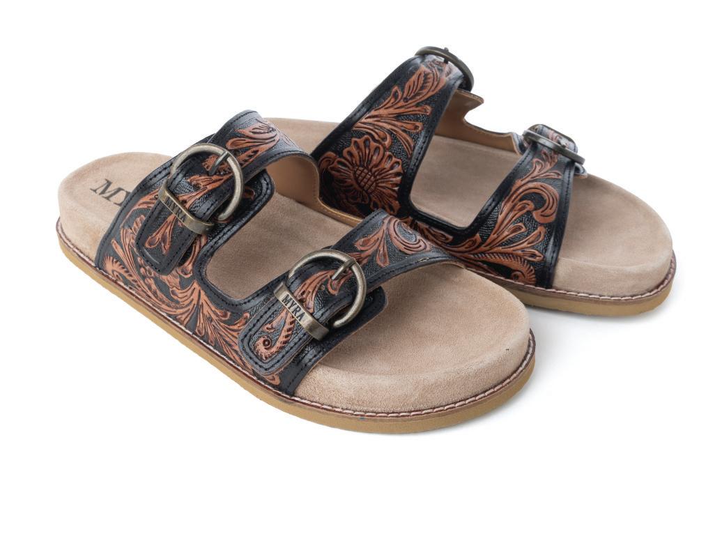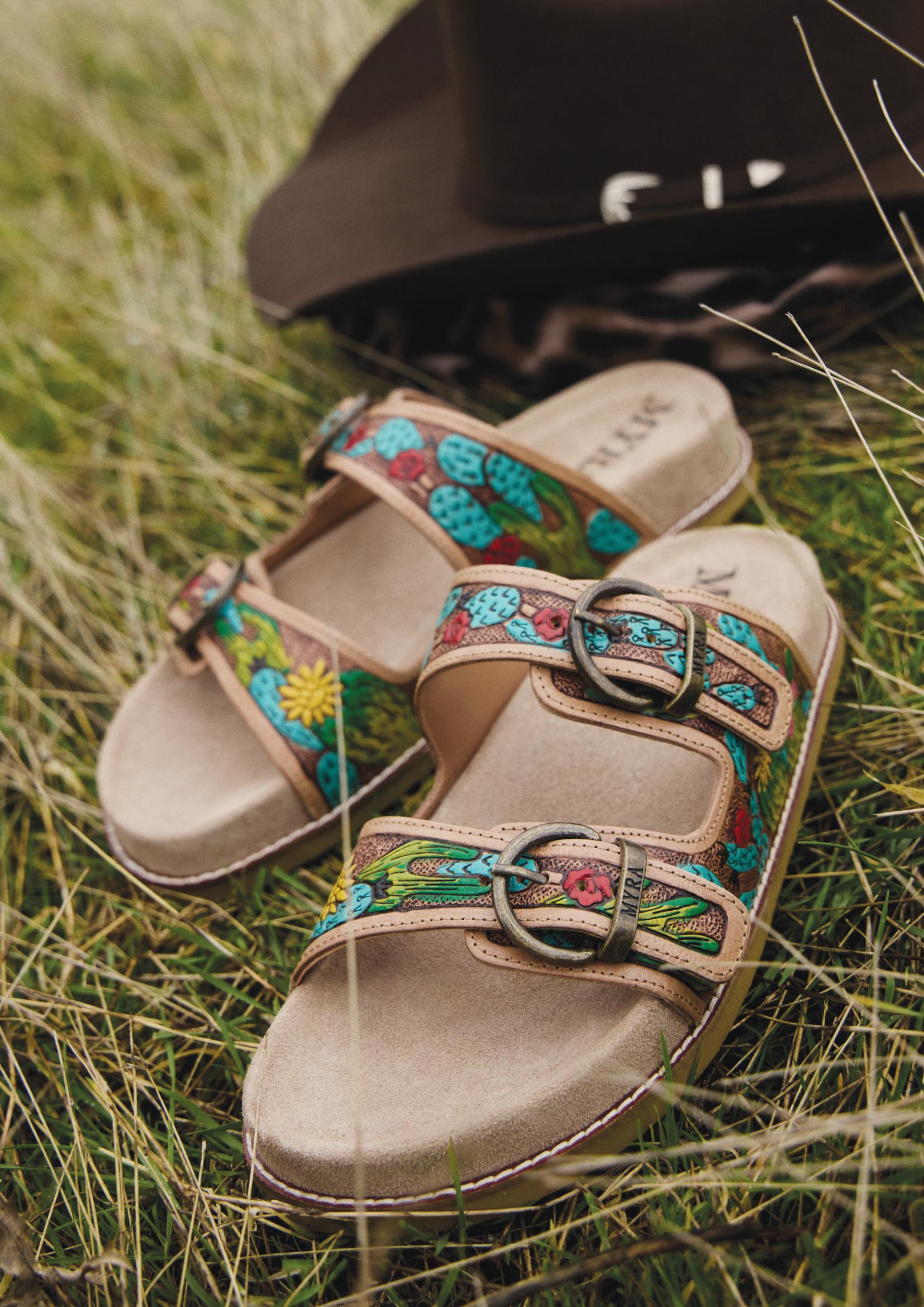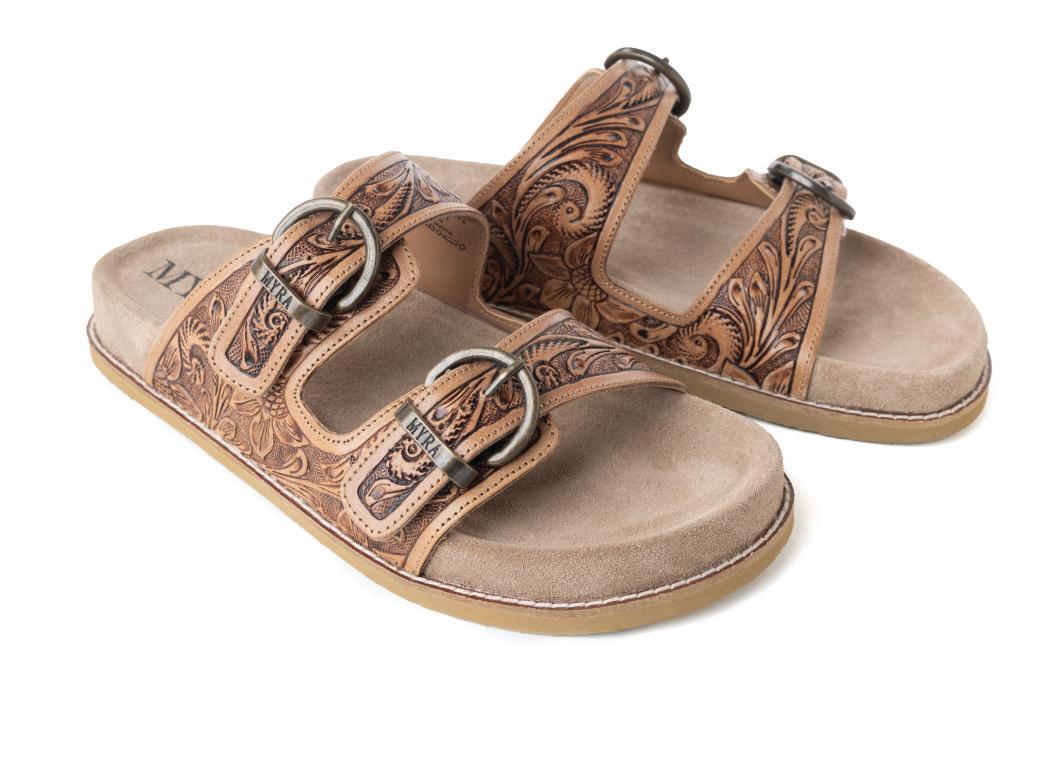 Desert Fern Handtooled Leather Sandals in Autumn Tan