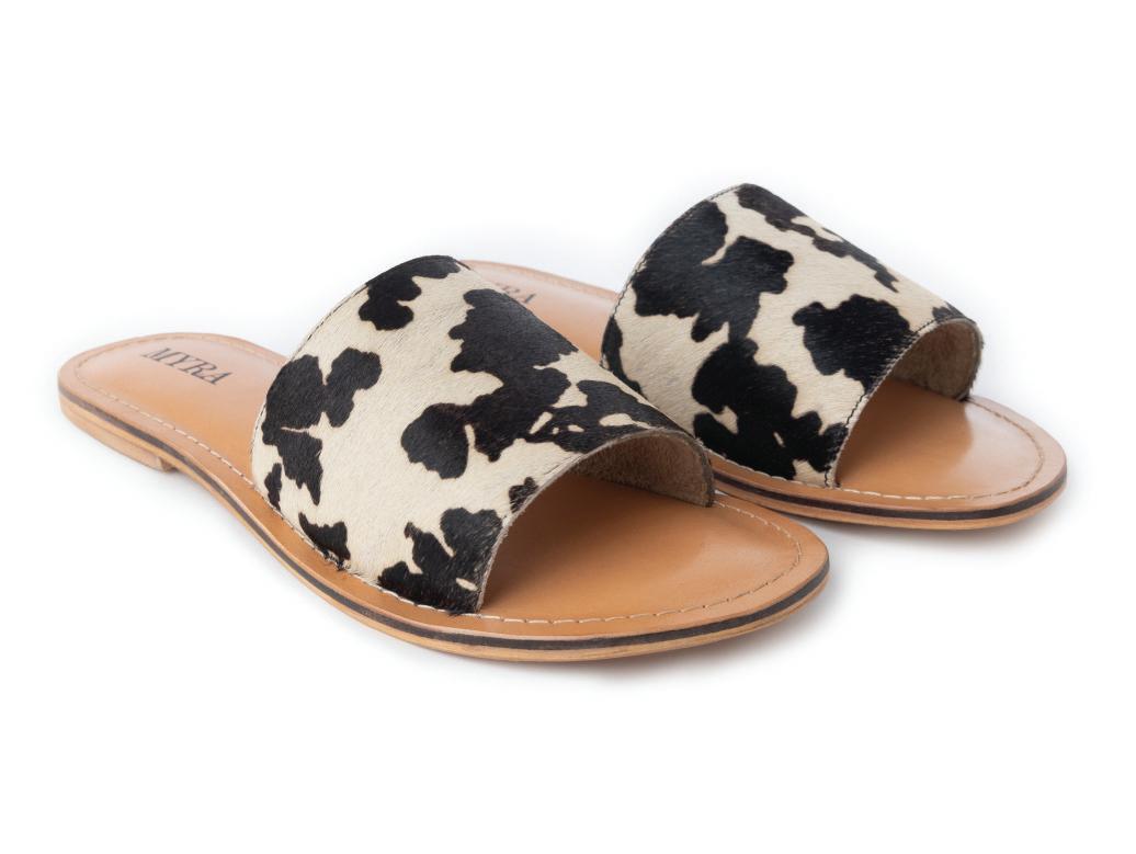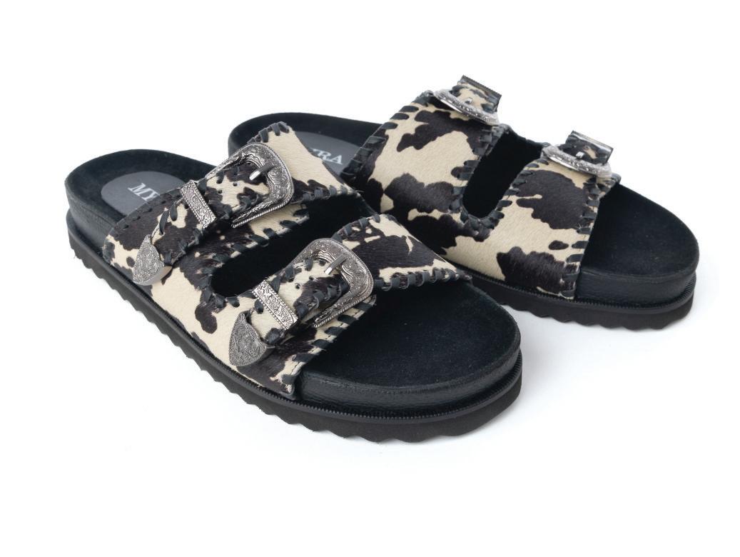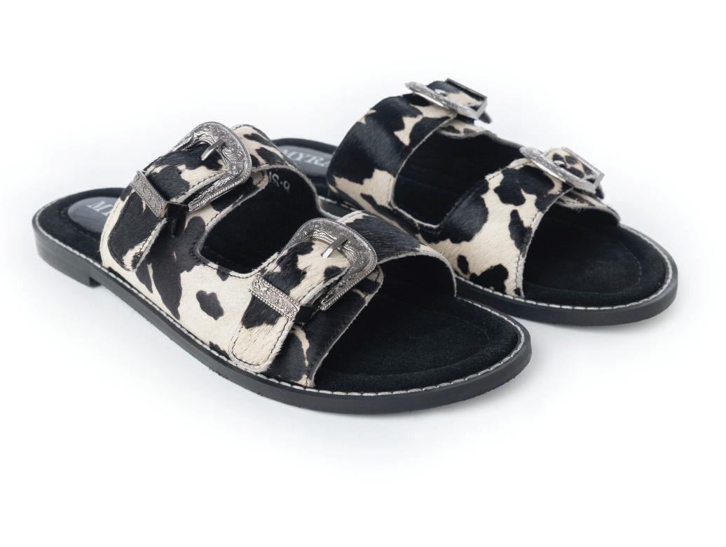Cattle Trail Hairon Leather Sandals in Ivory Cowhide