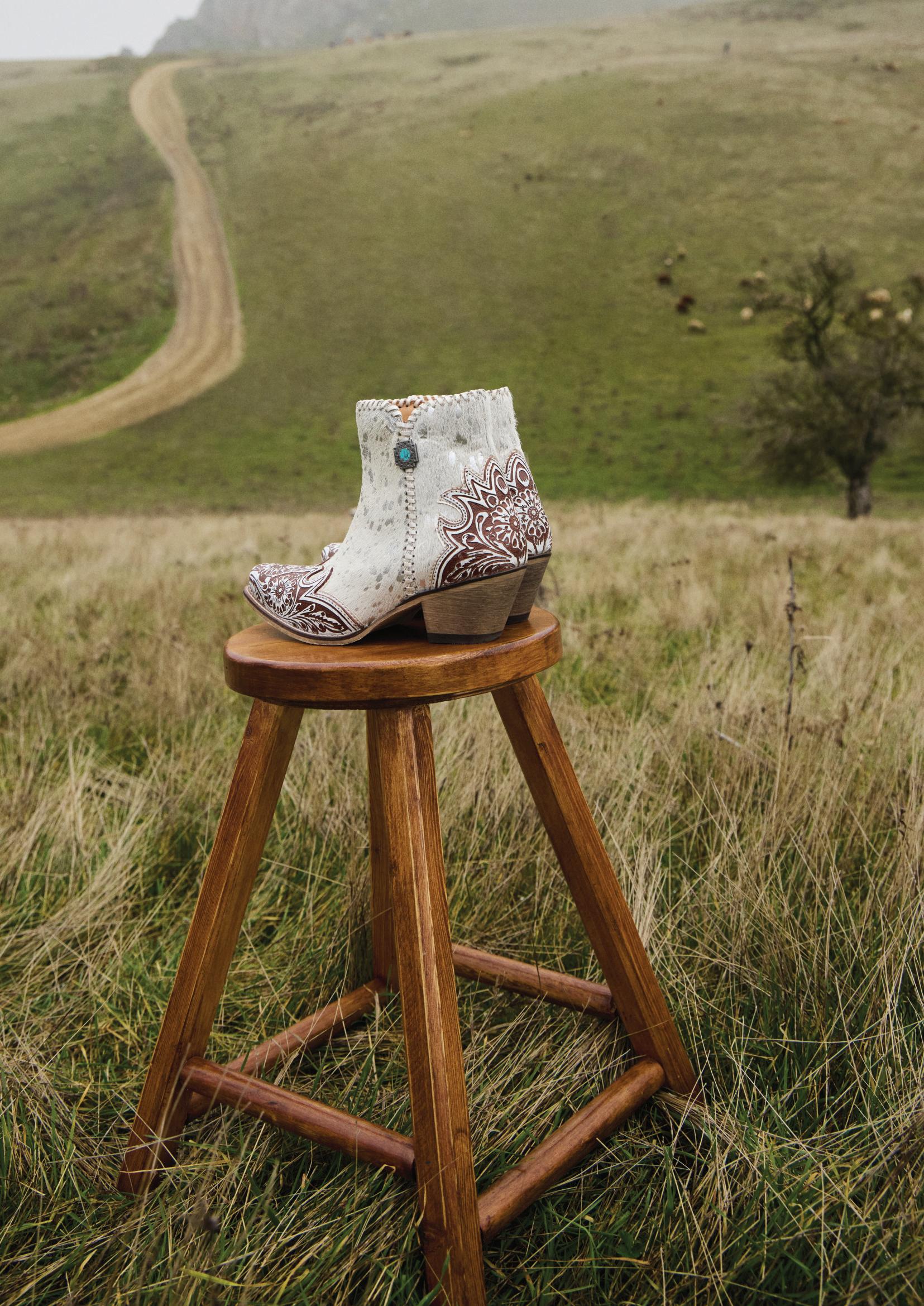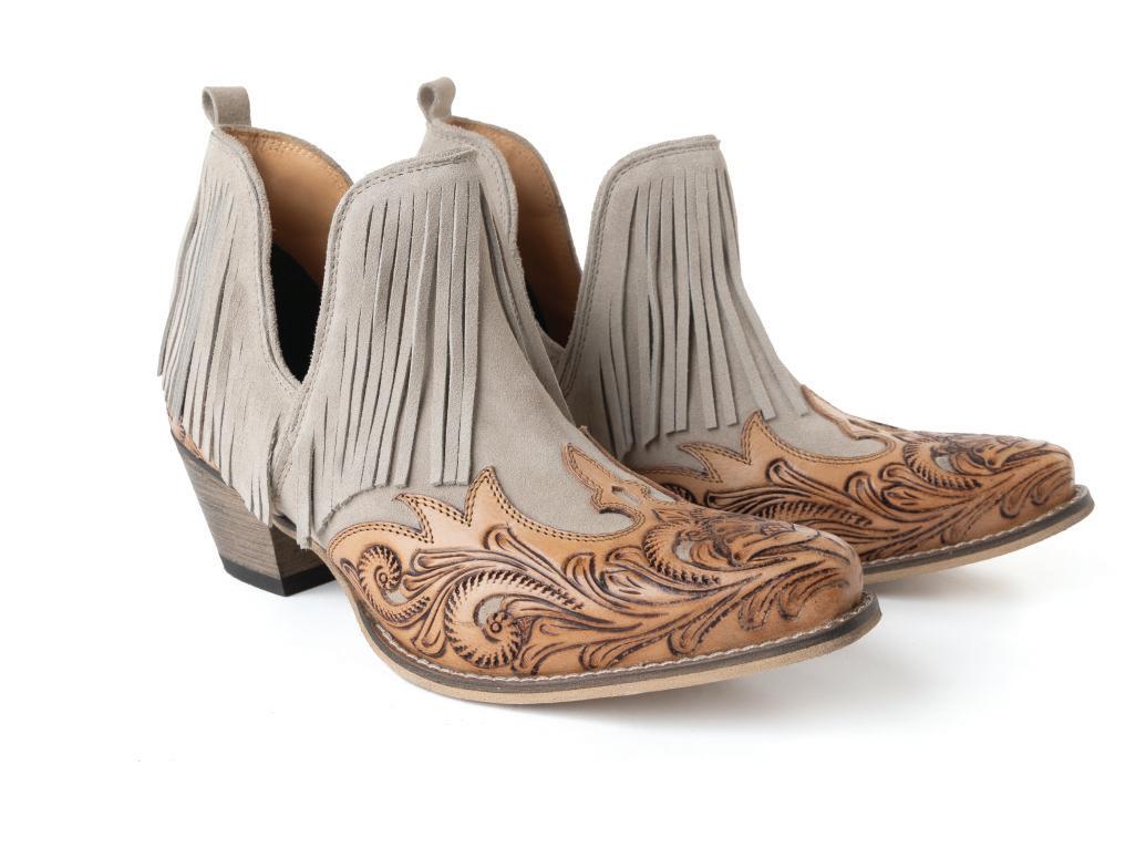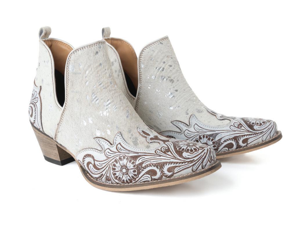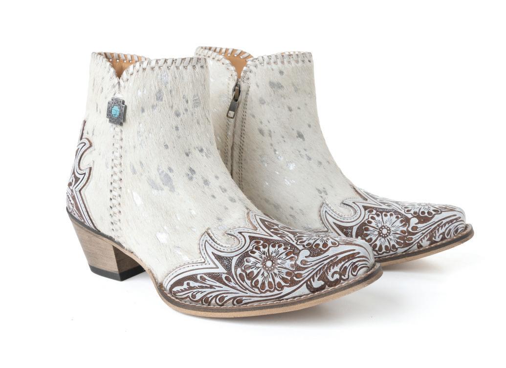 Sierra Belle Handtooled Leather Booties in Almond White