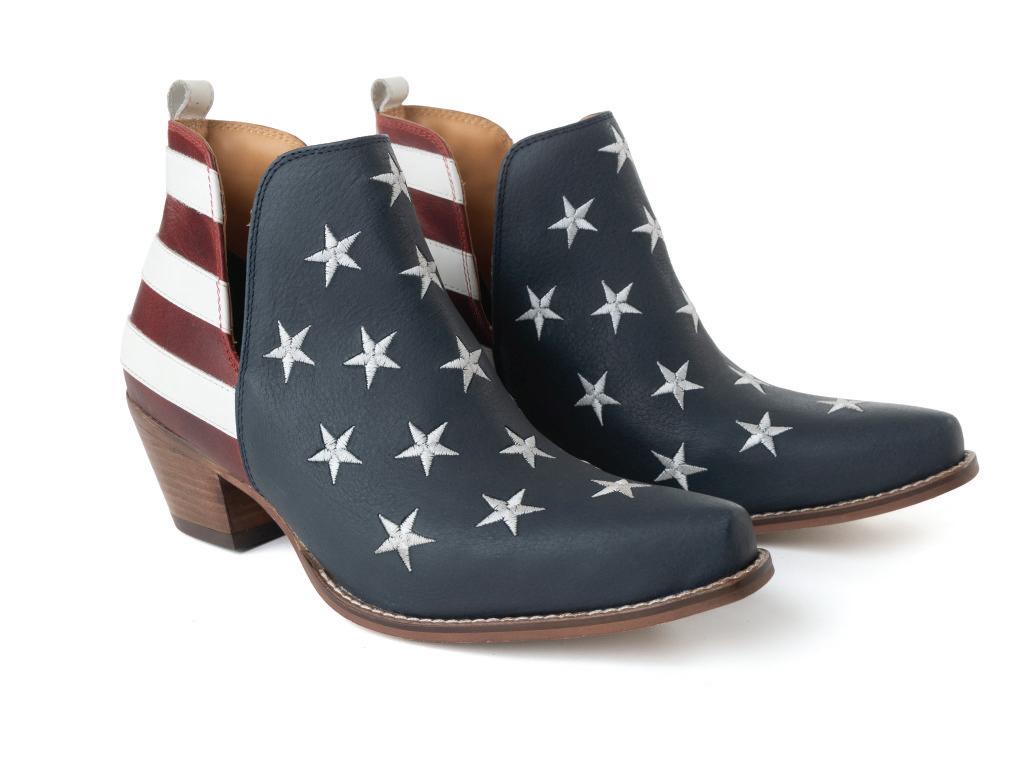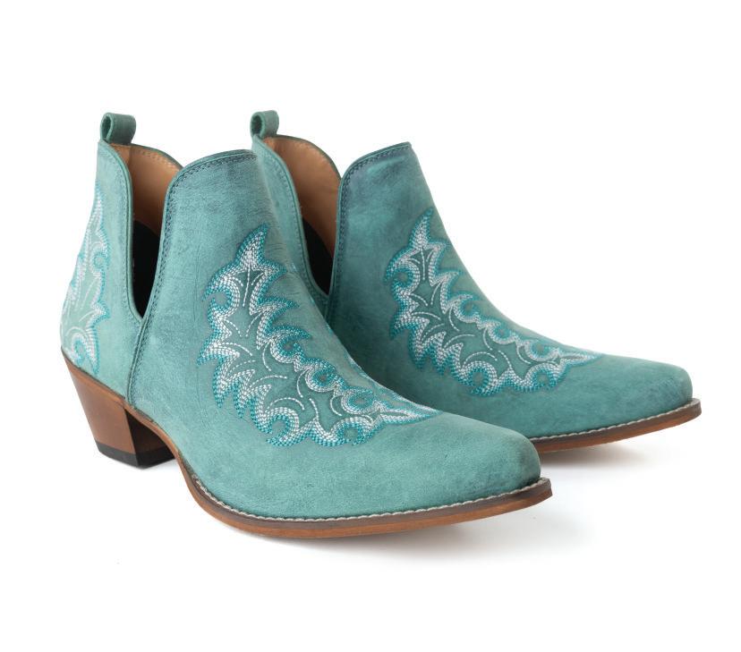 Star Leather Booties in Vintage Blue