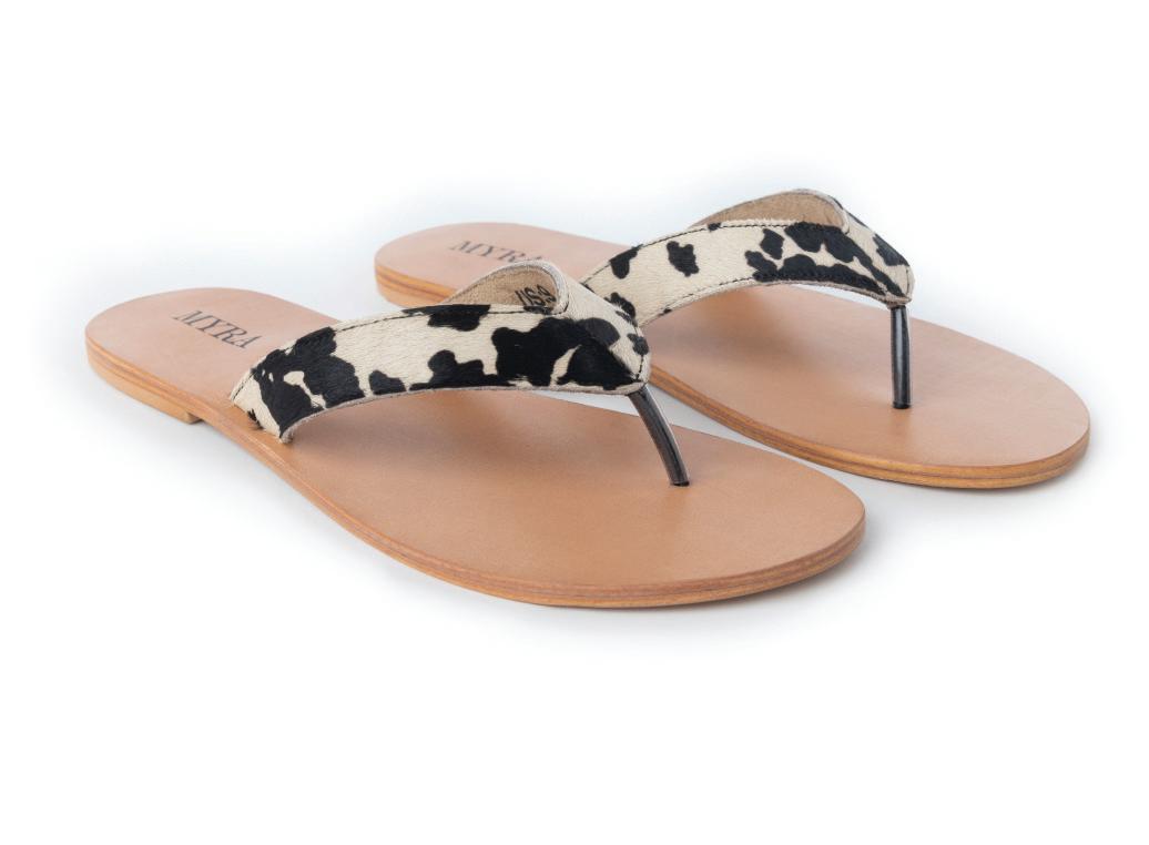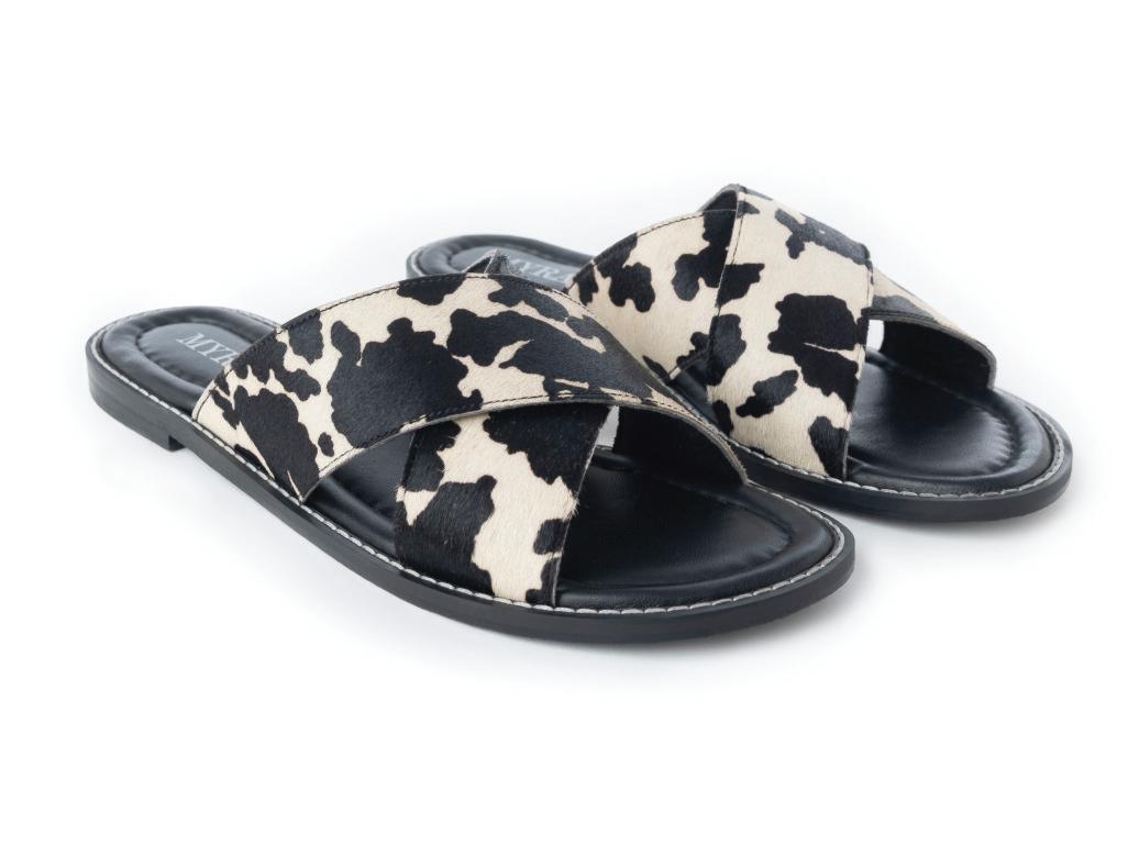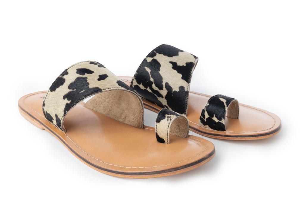 Echo Valley Hairon Leather Sandals in Spotted Ivory