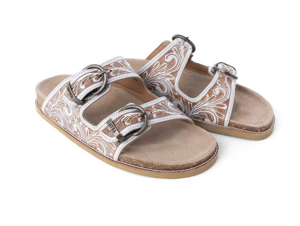 Marlowe Western Handtooled Leather Sandals in Ivory Bloom