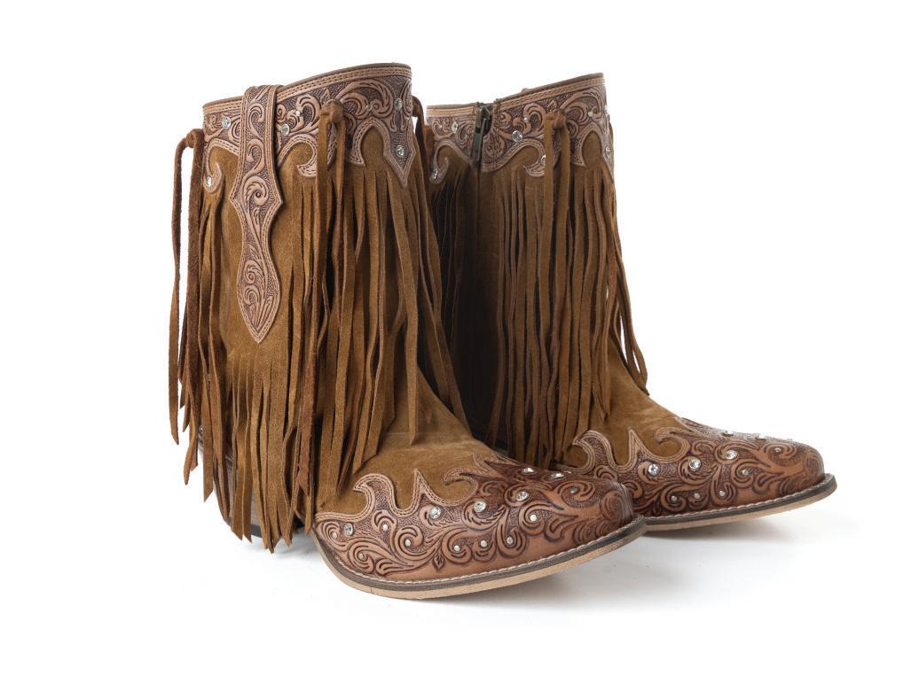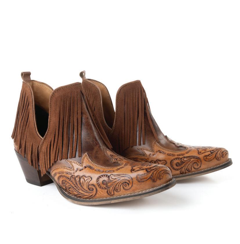 MINI-PREPACK PP-393X30 (5% Discount) Wild Ember Fringed Handtooled Leather Booties in Golden Rust