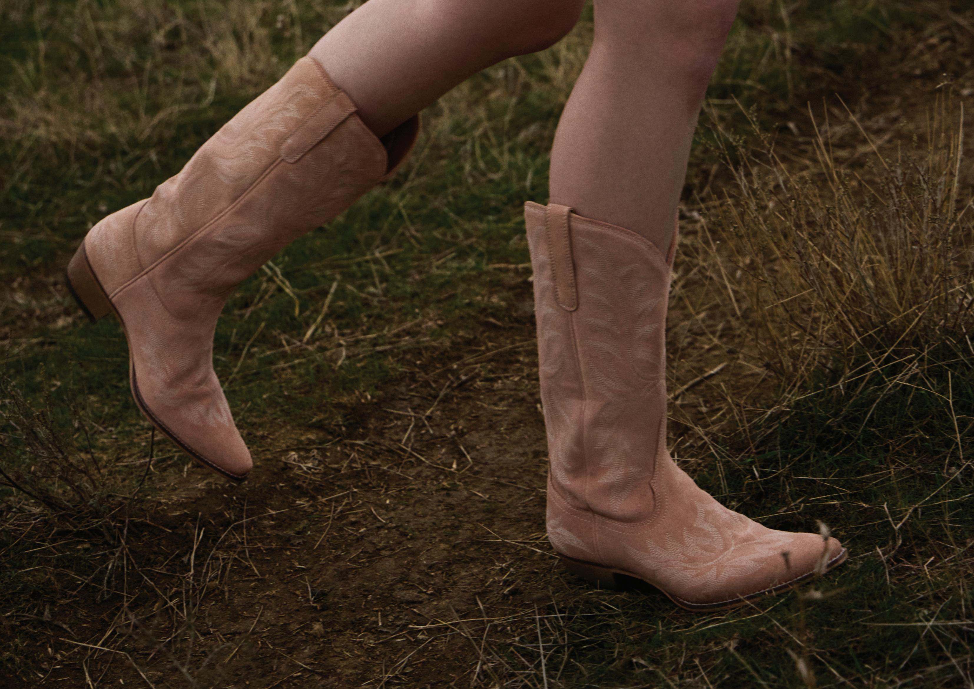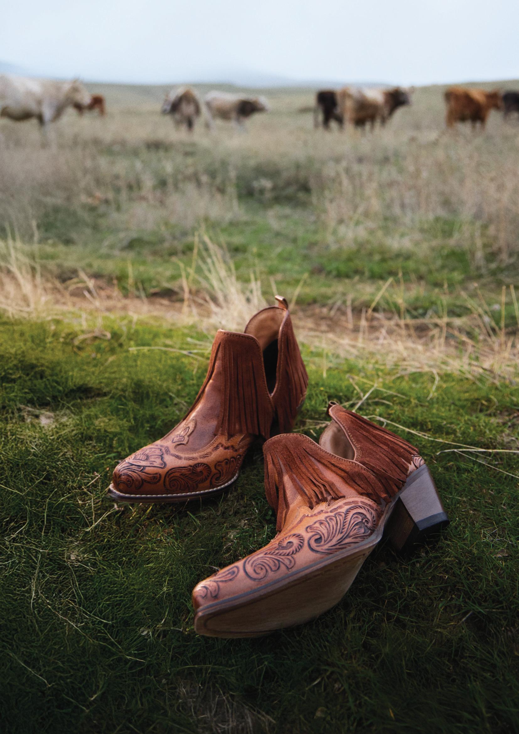 Starlit Range Handtooled Leather Booties in Frosted Mist