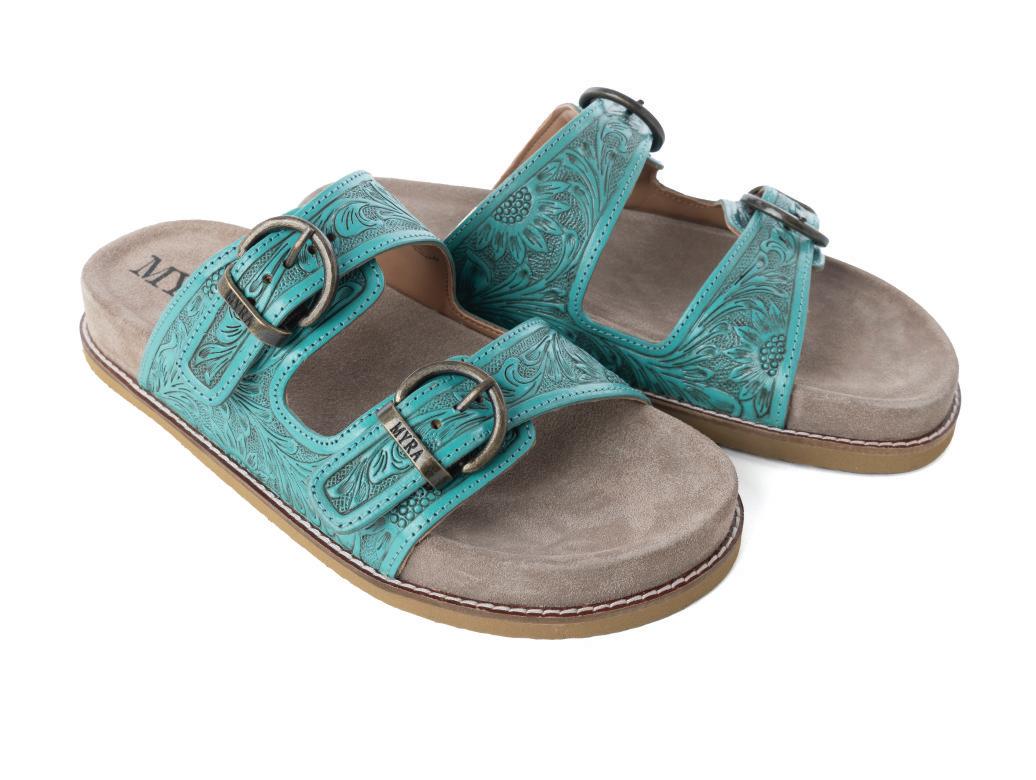 Rio Verde Handtooled Leather Sandals in Agave Blue