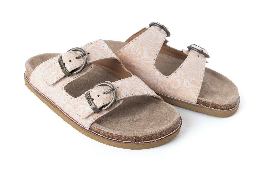 Desert Lily Embossed Leather Sandals in Antique White
