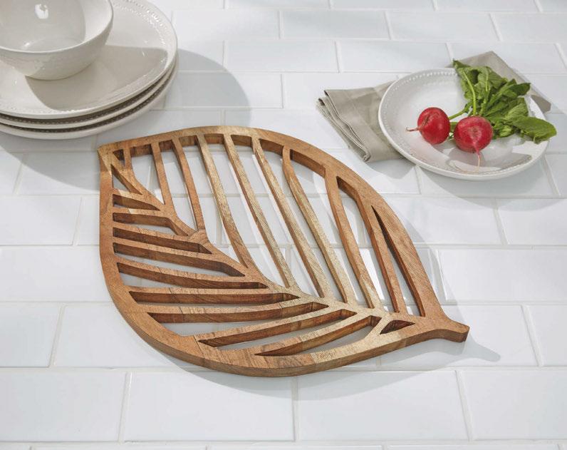 c. leaf wood charger #8599-864 mango wood. wipe with dry cloth to clean. 18.25" x 12.5" x .25" 002E0021X000
