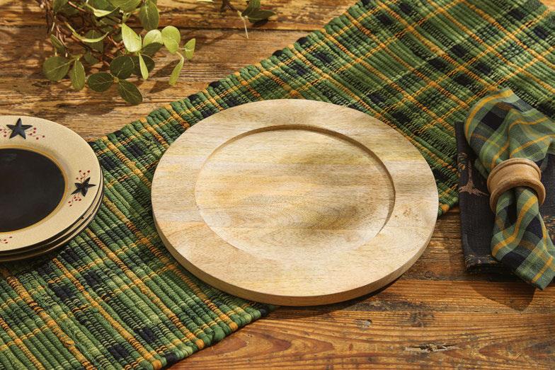 wooden circles charger #8599-862 mango wood. clean with dry cloth. 14" dia. x .75" 002E0017X250