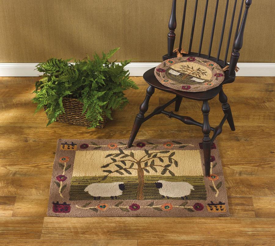 Willow And Sheep Hooked Rug #051-35 2' x 3' 002E0044X500
