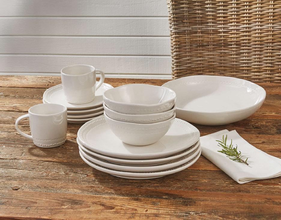 organic hand modeled shapes with a beautiful bead pattern inset around the edges. dishwasher and microwave safe.