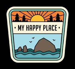 1658N-LSTK with the text “MY HAPPY PLACE” and the river swapped for Haystack Rock