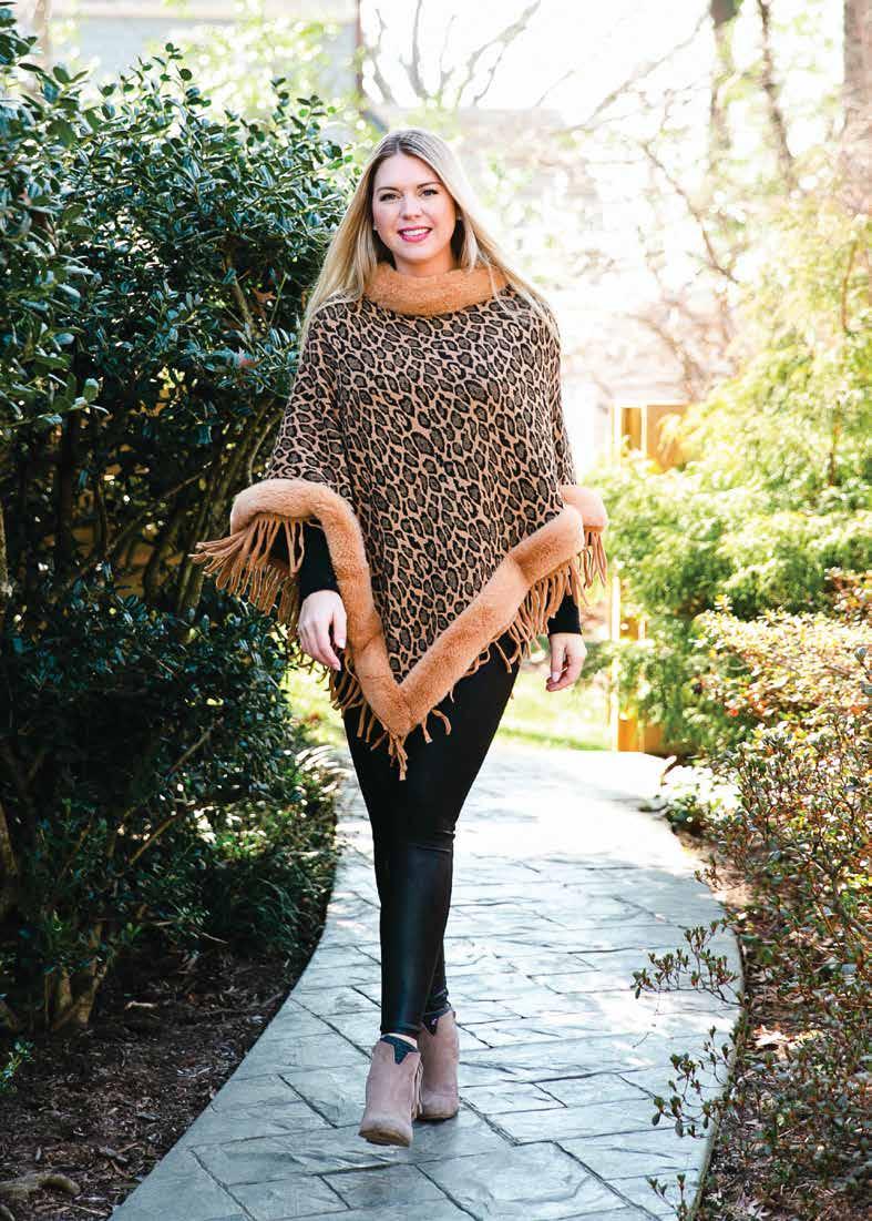 FALL/WINTER MARGIN MAKERS 365 Blue Leopard with Black Faux Fur Trim 100% Polyester, Faux Fur: 100% Polyester 149-BLEO $30 $15 Camel Leopard with Camel Faux Fur Trim 100% Polyester, Faux Fur: 100% Polyester 149-CLEO $30 $15 Desiree Poncho Sold in quantities of 3 | $30 $15 each | One size | 90% Polyester, 10% Wool, Faux Fur: 100% Polyester 27” L from center neckline to point with 3” L collar and 3” L trim in faux fur * * *So as Velvet! 80 Units 145 Units ONE size! 50% SALE OFF Inventory quantity is notated near each product item in red.
