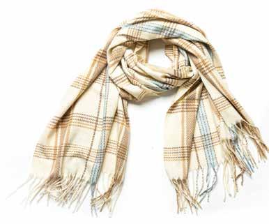 FALL/WINTER MARGIN MAKERS 346 Sandy Scarf Sold in quantities of 3 | $10 $5 each | One size | 90% Polyester, 10% Acrylic | 68.9” L x 26.5” W, 1.5” Fringe ONE size! Camel Plaid S01-CML $10 $5 Orange Plaid S01-ORG $10 $5 50% SALE OFF 75 Units 185 Units