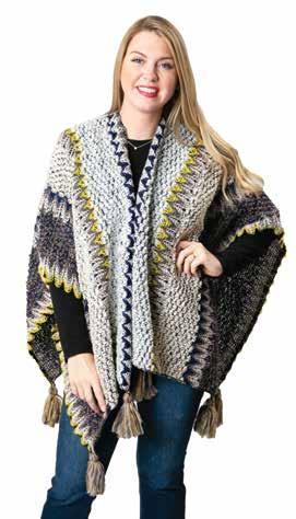 FALL/WINTER MARGIN MAKERS 367 115 Units Taupe Zig Zag 139-TPE $20 $10 Lulu Poncho Sold in quantities of 3 | $20 $10 each | One size | 55% Cotton, 45% Acrylic | 30” L x 25.75” W 35.5” L from center point of neckline to point of hem, side button closure ONE size! 50% SALE OFF Inventory quantity is notated near each product item in red.