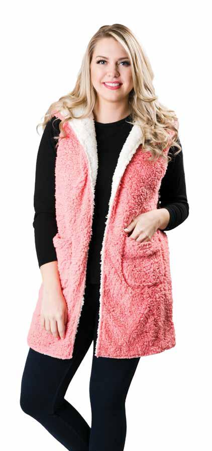FALL/WINTER MARGIN MAKERS 389 Pink and Cream 794-PNK (S/M, M/L = $28 $14) Navy and Cream 794-NVY (S/M, M/L = $28 $14) Reversible Nellie Hooded Sherpa Vest Sold in quantities of 2 by size | S/M, M/L = $28 $14 each | SM (4-8), ML (10-14) | 100% Polyester | Hood I’m Reversible! SM - 100 Units ML - 95 Units SM - 20 Units 50% SALE OFF Inventory quantity is notated near each product item in red.