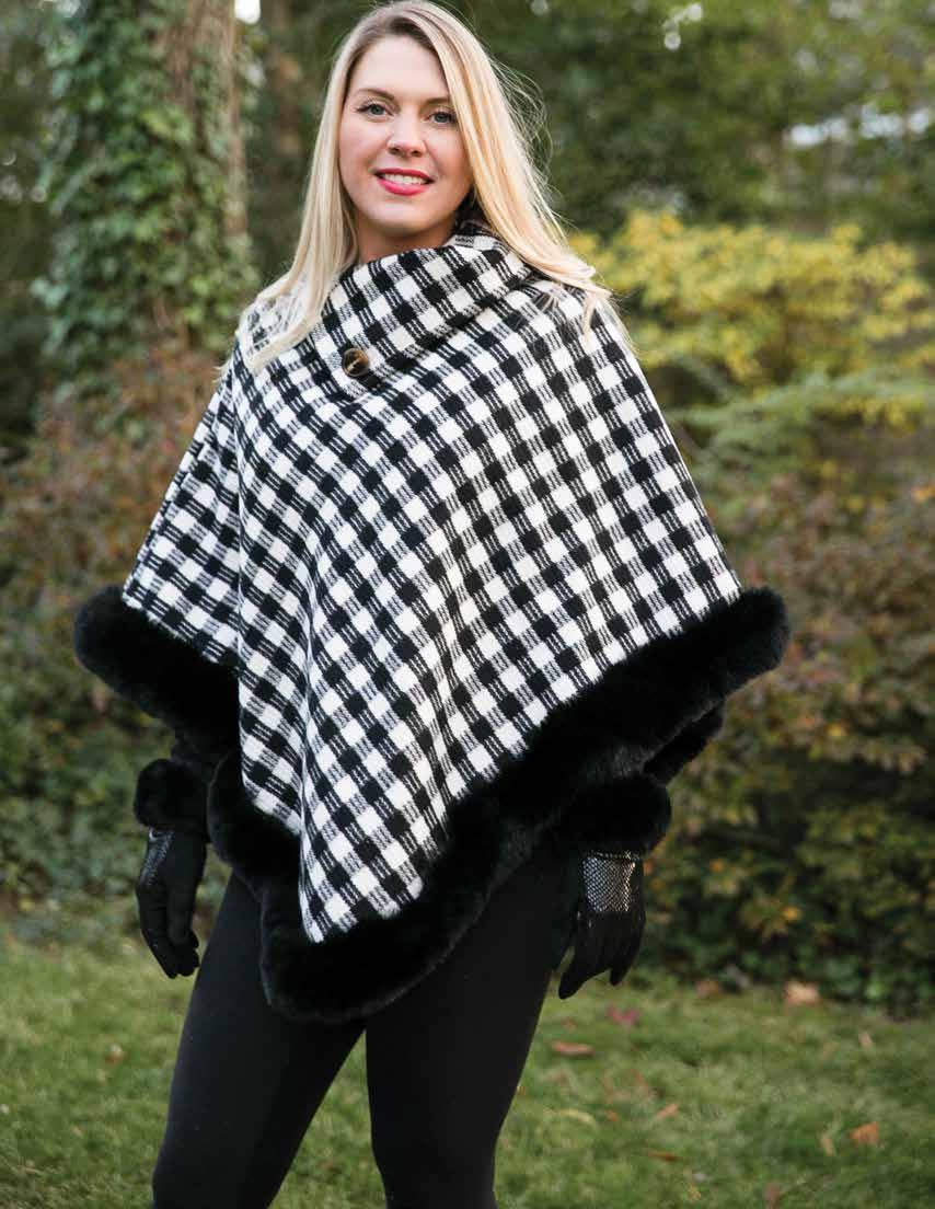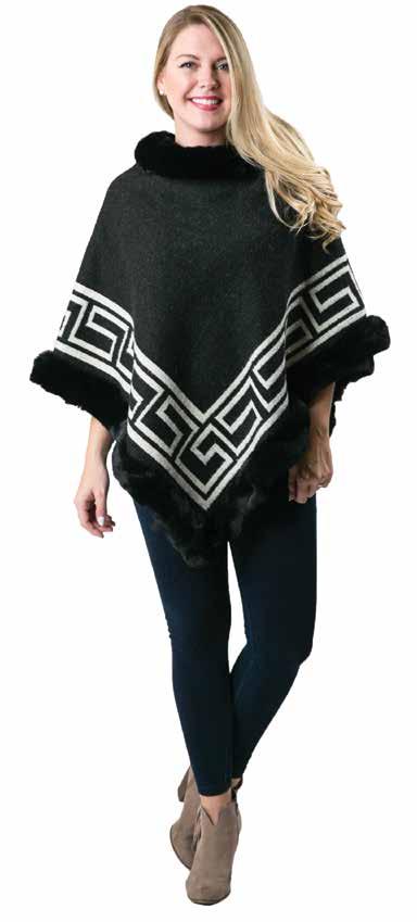 FALL/WINTER MARGIN MAKERS 368 20 Units Black with Black Faux Fur 581-BLK $15 $7.50 Emory Poncho Sold in quantities of 3 | $15 $7.50 each | One size | 100% Polyester | 28” L from shoulder to bottom ONE size! 50% SALE OFF Inventory quantity is notated near each product item in red.