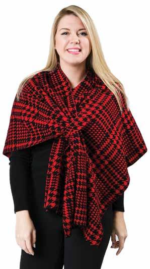 FALL/WINTER MARGIN MAKERS 359 Black and White Houndstooth 672-HOU $20 $10 Black with White Plaid 672-BWPL $20 $10 Katie Knit Print Keyhole Wrap Sold in quantities of 3 | $20 $10 each | One size | 100% Acrylic (patterns) | 27” L from the neck to the back point 32” L from the shoulder to the longest point in the front Red Glen Plaid 672-RGLEN $20 $10 ONE size! 50% SALE OFF 115 Units 150 Units 90 Units