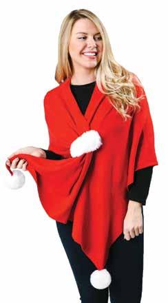 FALL/WINTER MARGIN MAKERS 357 Katie Knit Print Keyhole Wrap Sold in quantities of 3 | $20 $10 each | One size | 100% Acrylic (patterns) | 27” L from the neck to the back point 32” L from the shoulder to the longest point in the front Red with Candy Canes 672-RCAN $20 $10 Red and White Snowflakes 672-SNOW $20 $10 Red Alpine 672-RALP $20 $10 ONE size! 50% SALE OFF 200 Units 420 Units 365 Units
