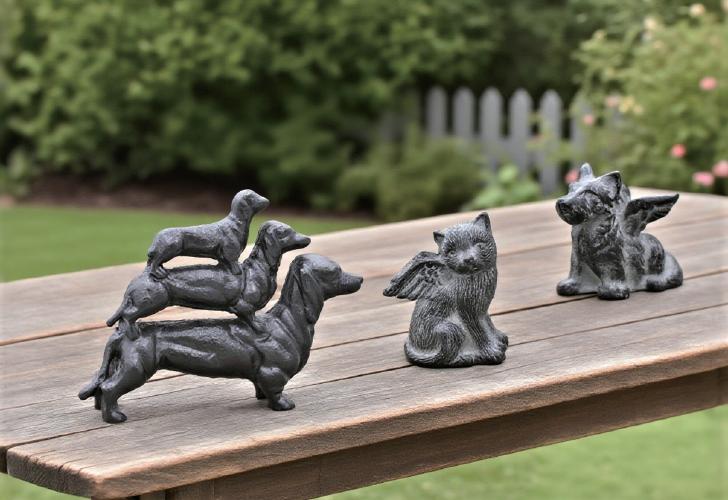 Metal Flower Finials on Black Wood Stand, 3 assorted