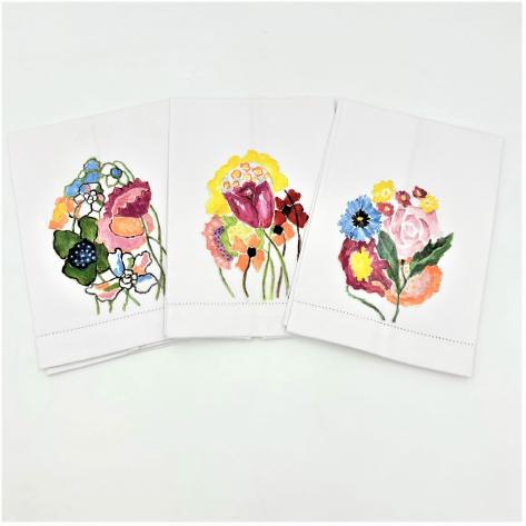 Handpainted Tea Towel, Abstract Florals, 3 assorted ©Tawnya Norton