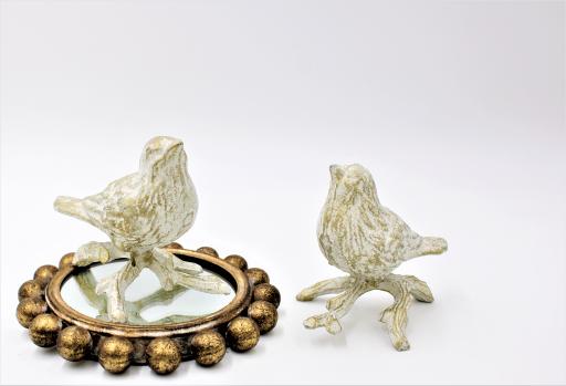 x2x3-4.5" Cast Iron Birds, White with Gold Wash, 2 assorted