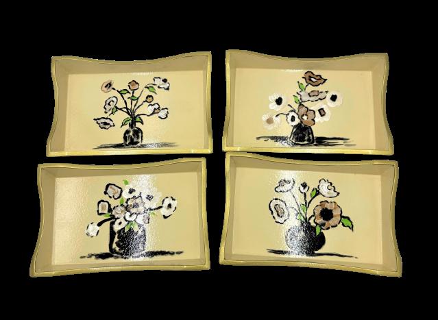 Handpainted Wood Tray, Black Vases with Flowers, 4 assorted ©Tawnya Norton